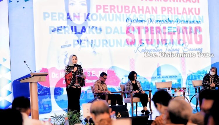 Tulang Bawang (MIN) – Bupati Tulang Bawang Winarti di daulat jadi Pembicara dan Narasumber Nasional berkat keberhasilan penurunan stunting melalui 25 Program BMW, di Ballroom Shangri-la Hotel Jakarta, Selasa (6/12/2022).