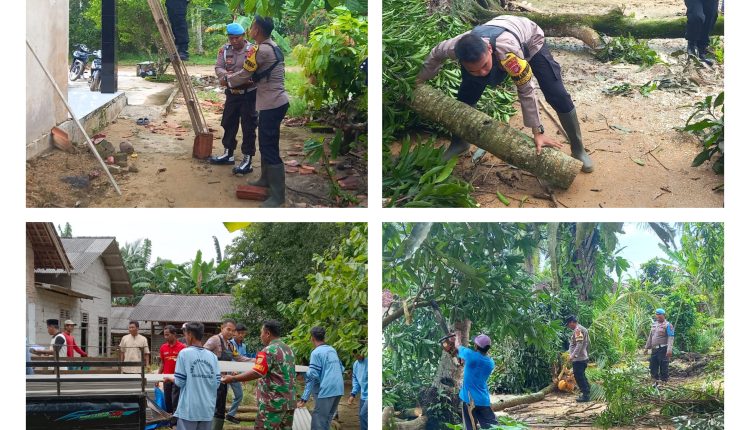 Polres Lamtim Gotong Royong Bantu Korban Angin Puting Beliung