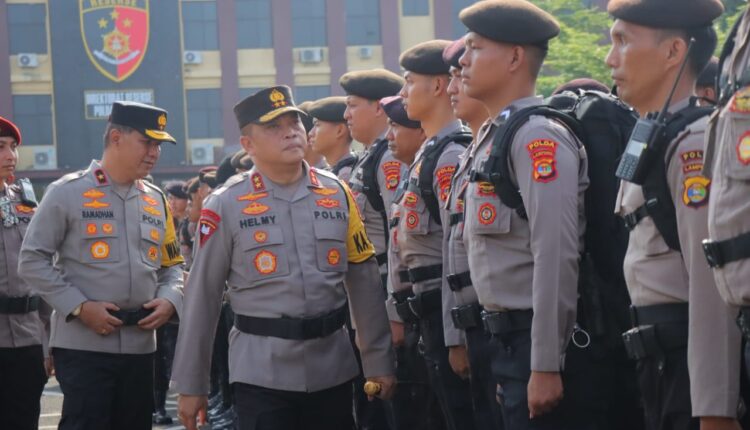 Mi-Net.com – Kapolda Lampung Irjen Pol Helmy Santika memimpin apel pergeseran pasukan Operasi Mantap Brata Krakatau 2023-2024 dalam rangka pengamanan tahap pemungutan suara pemilu 2024 di wilayah hukum Polda Lampung, pada Senin (12/2/2024).