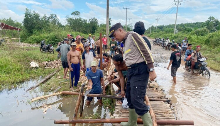 Cegah Aksi Pungli, Polsek Dente Teladas Bersama Warga Gotong Royong Bangun Jembatan