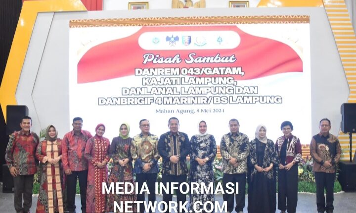 MEDIA INFORMASI NETWORK.COM (Lampung) – Masih dalam rangkaian acara serah terima jabatan Komandan Korem 043/Gatam, dari pejabat lama Brigjen TNI Iwan Ma’ruf Zainudin, S.E., kepada Brigjen TNI Rikas Hidayatullah, S.E., M.M., Rabu malam (8/5/2024) dilaksanakan acara pisah sambut Danrem 043/Gatam bersama Gubernur dan Forkopimda Provinsi Lampung.