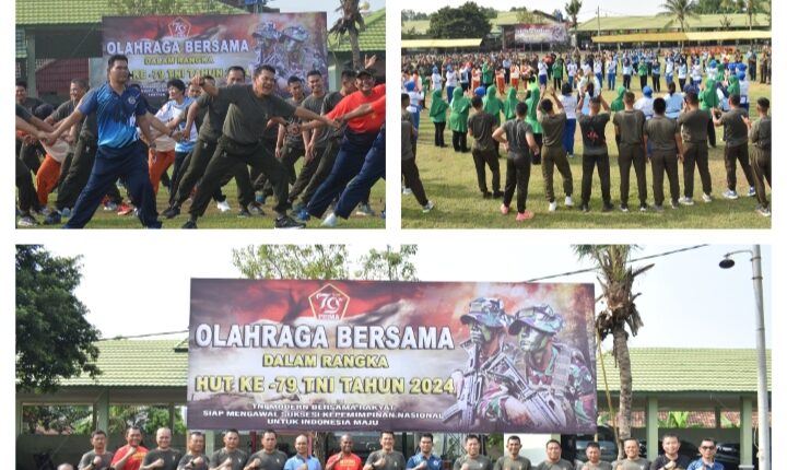Lampung – Bertempat di lapangan Satuan Logistik (Satlog) Korem 043/Gatam Jl. By Pass Soekarno-Hatta Bandar Lampung, dilaksanakan Olahraga Bersama TNI Wilayah Provinsi Lampung, dalam rangka memeriahkan Hari Ulang Tahun (HUT) Ke-79 Tentara Nasional Indonesia (TNI) Tahun 2024, olahraga bersama ini juga ditujukan untuk mempererat tali silaturahmi sekaligus memperkuat kebersamaan dan sinergitas TNI di Provinsi Lampung. Rabu (02/10/2024).