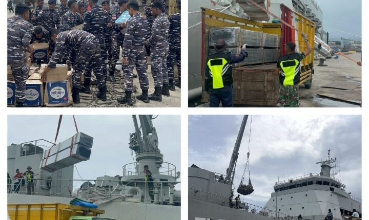 KRI Teluk Youtefa-522 yang dipimpin oleh Komandan KRI Letkol Laut (P) Tri Hidayat, S.Sos, MPM., sebelumnya diberangkatkan dari Dermaga Semampir, Surabaya pada 29 Desember 2024 ini, membawa berbagai bantuan dari Badan Nasional Penanggulangan Bencana (BNPB) berupa 1.160 kloset, 1.170 Pcs kran plastik universal, 3.445 batang pipa PVC 3, 56.100 batang kanal dan hollo, 44.300 lembar seng gelombang, board & spandek, 245 kotak paku seng & baut, 10.320 buah tee, faucet elbow, grendel dan engsel, 5.740 buah overal gembok,saklar engkel, hak angin penahan dan stop kontak, 1.974 buah lem pipa PVC, seal tape, isolasi listrik & saringan got plastik, 44 roll kabel listrik.