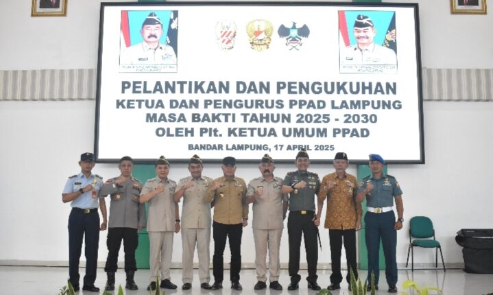 Lampung (MI-NET) – Pada Kamis, 17 April 2025, bertempat di Aulia Sudirman Makorem 043/Gatam, Jl. Teuku Umar Penengahan Bandar Lampung, Komandan Korem 043/Gatam Brigjen TNI Rikas Hidayatullah, S.E., M.M., menghadiri acara pelantikan dan pengukuhan ketua serta Pengurus Persatuan Purnawirawan Angkatan Darat (PPAD) Provinsi Lampung untuk masa bakti 2025-2030. Acara ini juga dihadiri oleh Plt. Ketua Umum PPAD Mayjen TNI (Purn) Dr. Komarudin Simanjuntak, S.IP., M.Sc.