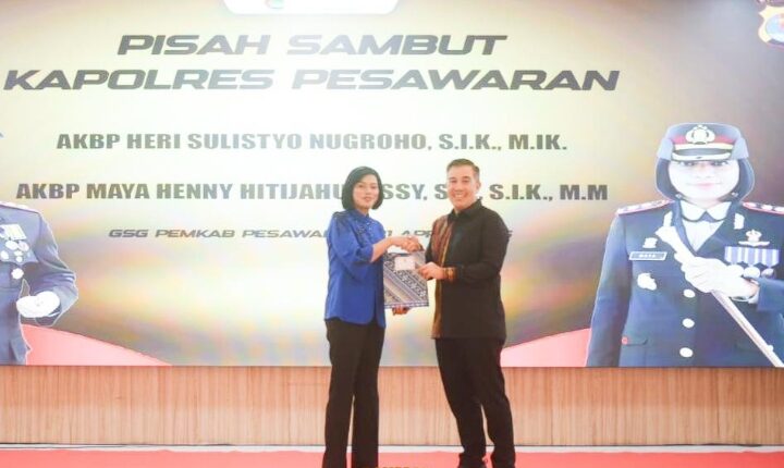 Pesawaran (MI-NET) — Pemerintah Kabupaten Pesawaran menggelar acara pisah sambut Kepala Kepolisian Resor (Kapolres) Pesawaran dari AKBP Maya Henny Hitijahubessy, S.H., S.I.K., M.M., kepada Kapolres baru AKBP Heri Sulistyo Nugroho, S.I.K., M.I.K.,. Acara pisah sambut digelar di GSG Pemkab Pesawaran pada Senin malam, (21/4/2025).