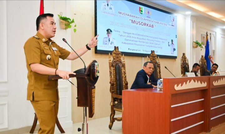 PESAWARAN (MI-NET) – Bupati Kabupaten Pesawaran, Dendi Ramadhona, secara resmi membuka Musyawarah Olahraga Kabupaten (MUSORKAB) Komite Olahraga Nasional Indonesia (KONI) Kabupaten Pesawaran Tahun 2025 di Aula Pemkab Pesawaran, Selasa (19/08/2025).