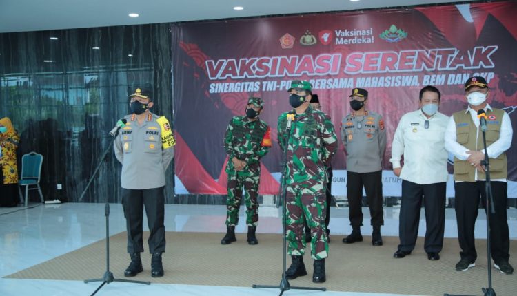 Kapolda Lampung Dampingi Panglima TNI dan Kabaharkam, Tinjau Vaksinasi Merdeka Serentak