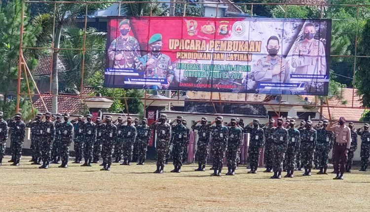 Bandar Lampung (Red) – Kepala Sekolah Polisi Negara (SPN) Polda Lampung, Kombes Pol. Sri Winugroho, pimpin upacara Pembukaan Pendidikan dan Pelatihan Integrasi Dikmaba TNI AD dan Diktuba Polri tahun 2021 di SPN Kemiling Bandarlampung, Senin (13/12/2021) pagi.