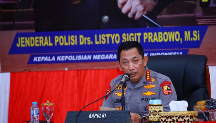 Bandar Lampung (MIN) – Kapolri Jenderal Listyo Sigit Prabowo memberikan pengarahan di Polda Lampung jajaran terkait dengan seputaran situasi keamanan dan ketertiban masyarakat (sitkamtibmas), penanganan covid-19 hingga soal transformasi Polri yang Presisi.