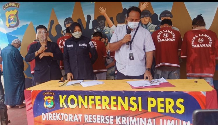 Direktur Reserse Kriminal Umum Polda Lampung, Kombes Pol. Reynold Hutagalung, melalui Kasubdit 1 Kamneg Polda Lampung, AKBP. Dodon Pryambodo didampingi Kaur Penerangan Umum (Penum) Bid. Humas Kompol. Fauzimah mengatakan, saat ini pihaknya kembali menetapkan delapan orang tersangka berinisial AM, SM, PA, EH, TR, AK, EP, dan JS.