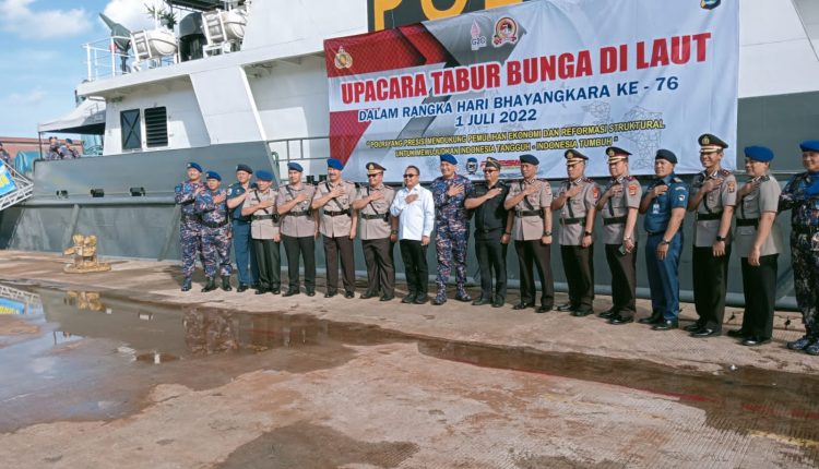 BANDAR LAMPUNG (MIN-SMSI) — Polda Lampung menggelar upacara tabur bunga di laut, bertempat di Dermaga B Pelabuhan Panjang, dan memberikan perhormatan atas jasa pahlawan yg telah memperjuangkan kemerdekaan Indonesia, Rabu (29/6/2022).