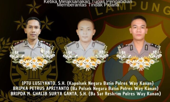 “Benar terjadi peristiwa penembakan terjadi dengan kronologis yakni 17 personel Polri Polres Way Kanan mendatangi tempat sabung ayam, saat di TKP langsung ditembaki oleh orang tak dikenal sehingga 3 personel gugur dalam tugas,” katanya, Senin (17/3/2025).