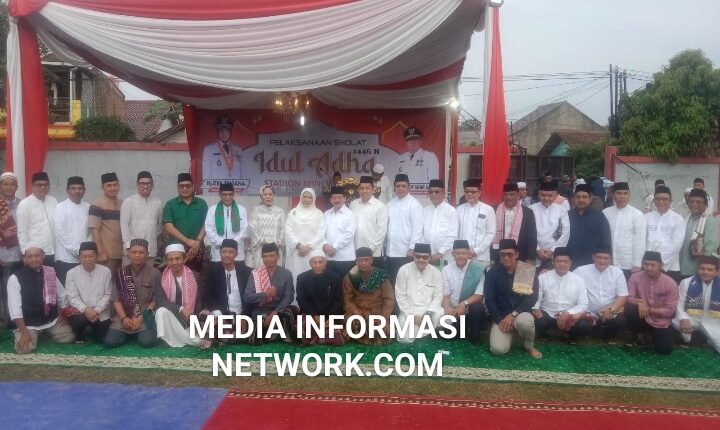 BANDAR LAMPUNG — Walikota Bandar Lampung Hj. Eva Dwiana, Sholat Hari Raya Idul Adha 1445 H /2024 M, di Stadion mini Way Dadi Sukarame Kota setempat, pada Senin (17/06/2024) sekira pukul 06.00 WIB.