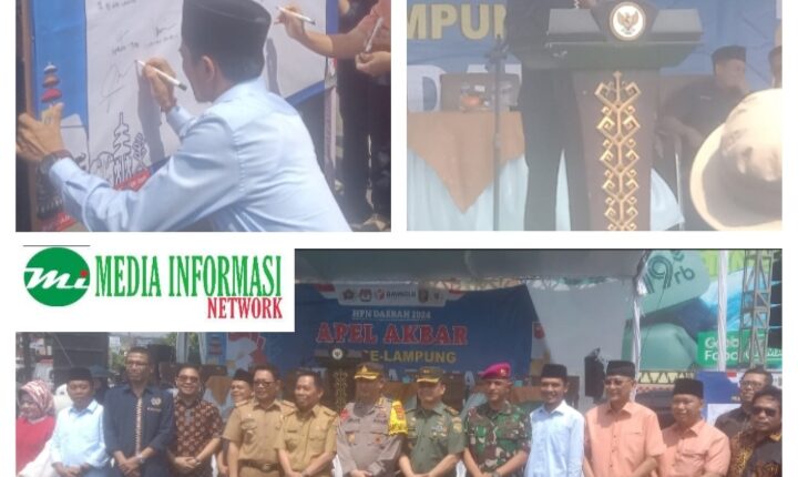 Ditempat yang sama, Pj. Gubernur Lampung Samsudin yang diwakili staf ahli Bidang Kemasyarakatan dan Sumber Daya Manusia Intizam menyampaikan, hari ini kita dapat menghadiri apel Akbar PWI Lampung dalam Pilkada damai dan integritas merupakan salah satu indikator utama keberhasilan pelaksanaan Pilkada adalah tingkat partisipasi pemilih pada pelaksanaan pemilu tahun 2024. Bahwa menurutnya, jumlah partisipasi pemilih di Provinsi Lampung sebesar 80,64% di mana angka ini lebih tinggi dari target dalam RPJMN tahun 2015-2019 sebesar 79,5%, harapan kita bersama bahwa kesuksesan pencapaian target partisipasi pemilih dapat terulang atau lebih tinggi pada pelaksanaan Pilkada serentak tahun 2024.