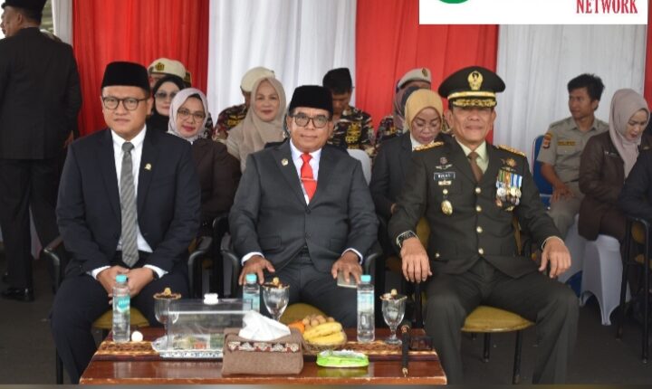 Selaku Inspektur Upacara (Irup) Pj. Gubernur Lampung Dr. Drs. Samsudin, S.H., M.H., M.Pd., Komandan Upacara (Danup) Pasilat Siops Korem 043/Gatam Kapten Inf M. Rafdi dan dihadiri Ketua DPRD Provinsi Lampung, Wakapolda Lampung, Asintel Kejati Lampung, Danlanal Lampung, Danlanud Pangeran M. Bunyamin, Paslog Brigif 4 Mar/BS, Perwakilan Binda Lampung, Wakil Pimpinan Wilayah BRI Lampung, Para Kepala OPD Provinsi Lampung dan LVRI Provinsi Lampung.