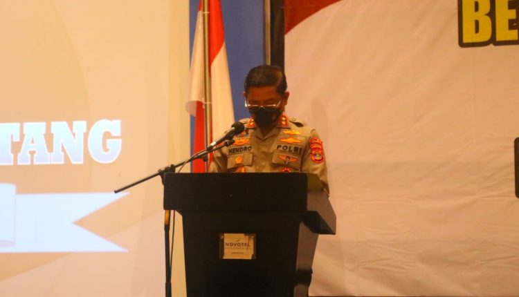 Bandar Lampung (MIN) — Kapolda Lampung Irjen Pol Hendro Sugiatno membuka acara sosialisasi Peraturan Polri No.8 Tahun 2021 Tentang Penanganan Tindak Pidana Berdasarkan Keadilan Restoratif, di Ball Room Hotel Novotel pada hari Selasa (9/11/2021) pagi.