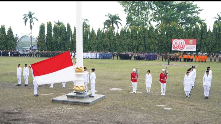 “Sebagaimana dikatakan Bung Karno, Bangsa yang besar adalah bangsa yang menghormati jasa pahlawannya. Maka hari ini kita meneruskan perjuangan mereka melalui kerja nyata dan pengabdian yang sungguh-sungguh. Dengan tema HUT Ke-80 Republik Indonesia Bersatu Berdaulat, Rakyat Sejahtera, Indonesia Maju, mari kita jadikan semangat kemerdekaan sebagai inspirasi dalam membangun bangsa,” ujar Gubernur.