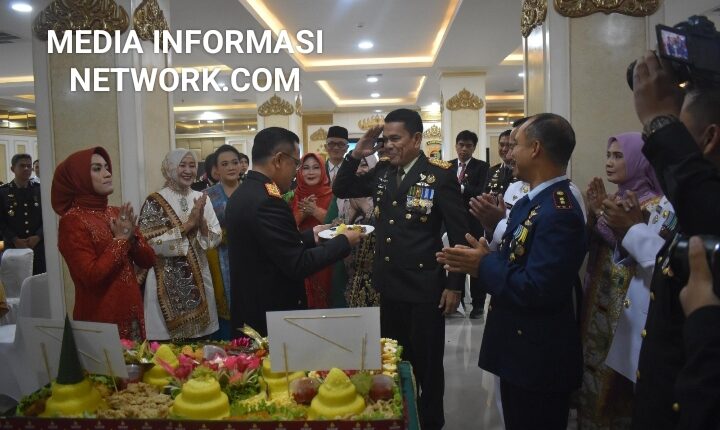 Lampung – Komandan Korem 043/Gatam Brigjen TNI Rikas Hidayatullah, S.E., M.M., bersama Ketua Persit Kartika Chandra Kirana Koorcab Rem 043 PD II/Sriwijaya Ny. Hanny Rikas Hidayatullah, menghadiri upacara dan syukuran peringatan Hari Ulang Tahun Bhayangkara Ke-78 Tahun 2024, bertempat di Lapangan Polda Lampung Jl.Terusan Ryacudu Way Hui Kecamatan Jati Agung Kabupaten Lampung Selatan, Senin (01/07/2024).