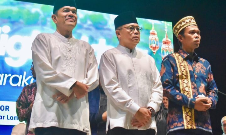Lampung (MI-NET) – Bertempat di Pusat Kegiatan Olahraga (PKOR) Way Halim Bandar Lampung, Komandan Korem 043/Gatam Brigjen TNI Rikas Hidayatullah, S.E., M.M., pada hari Jum’at tanggal 25 April 2025, menghadiri Tabligh Akbar dan Syawalan yang diselenggarakan oleh Pemerintah Provinsi Lampung. Acara ini menghadirkan penceramah Ustad Abdul Somad Batubara, Lc., D.E.S.A., Ph.D.