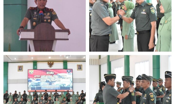 Lampung – Bertempat di Aula Sudirman Makorem 043/Gatam, Jl. Teuku Umar Penengahan Bandar Lampung, Komandan Korem 043/Gatam, Brigjen TNI Rikas Hidayatullah, S.E., M.M., memimpin acara Laporan Korps Kenaikan Pangkat Perwira dan Pelantikan Kenaikan Pangkat Bintara dan Tamtama, periode 1 Oktober 2024 dan dilanjutkan dengan acara syukuran. Rabu (02/10/2024).