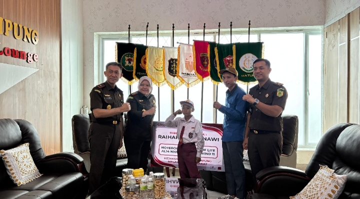 Hari ini, Selasa 19 Agustus 2025, pukul 07.20 WIB, Kepala Kejaksaan Tinggi Lampung memberikan apresiasi berupa 1 unit laptop kepada Raiihan. Hadiah ini bukan sekadar bentuk penghargaan, tetapi juga dorongan agar Raiihan terus menimba ilmu dan membuka jalan menuju masa depan yang lebih cerah.