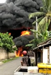 “Minyak bocor mengalir ke luar hingga merambat, kalau tidak ada parit bisa melimpah kemana-mana. Setelah itu membakar satu warung dan bengkel kecil,” kata warga kepada awak media.