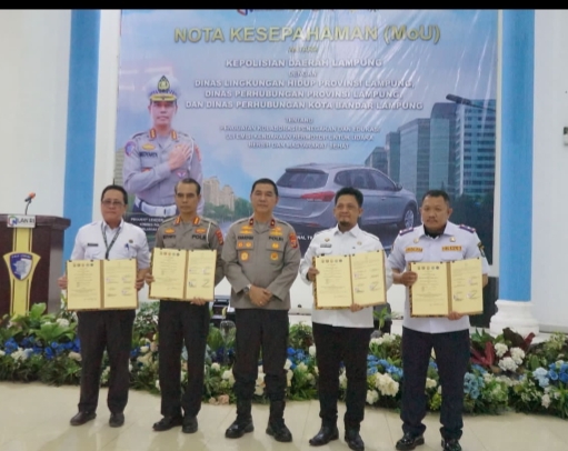 LAMPUNG (MI-NET) – Direktorat Lalu Lintas (Ditlantas) Polda Lampung menggagas penandatanganan nota kesepahaman (MoU) terkait penguatan kolaborasi penegakan dan edukasi uji emisi kendaraan bermotor.