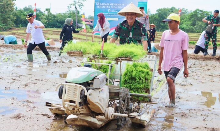 Dorong Swasembada Pangan Daerah, Danrem 043/Gatam Ikuti Gerakan Tanam Padi Serentak di Metro Timur
