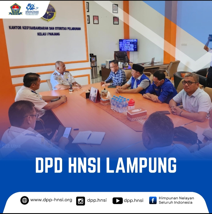 Bandar Lampung (MI-NET) – Pengurus Dewan Pimpinan Daerah Himpunan Nelayan Seluruh Indonesia (DPD HNSI) Provinsi Lampung dipimpin oleh Ketua Bayu Witara, SIP, Ketua Harian Heru Setiawan, S.Sos, Sekretaris Johan Alamsyah, S.E, dan pengurus, silahturahmi dengan jajaran KSOP Panjang.