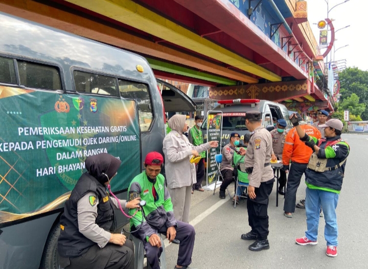 Driver Ojol di Bandar Lampung Dapat Layanan Cek Kesehatan Gratis Dari Polisi, Sambut Hari Bhayangkara ke-79