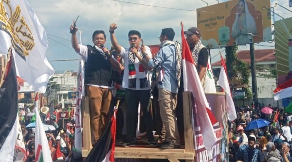 BANDAR LAMPUNG (MI-NET) – Lebih dari 10.000 orang Masyarakat Lampung berkumpul di Pusat Kota Bandar Lampung pada 19 April lalu, untuk menyuarakan Keadilan bagi Palestina. Dari gelombang solidaritas luar biasa yang digelar dalam Aksi Nyata Lampung Bersama Palestina Jilid III berbagai elemen masyarakat Lampung Lintas Agama, Ormas, Adat, Kalangan, Mahasiswa tumpah ruah di jalan, menyerukan hentikan Genosida, akhiri penjajahan di Gaza.