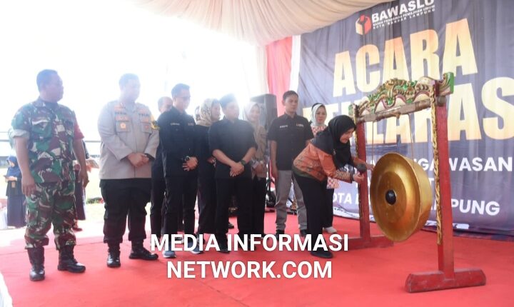 Bandar Lampung – Walikota Bandar Lampung, Hj. Eva Dwiana menghadiri acara deklarasi kelurahan pengawasan partisipatif pada Pemilihan Kepala Daerah (PILKADA) Serentak Tahun 2024 di Lapangan Baruna Panjang, Kota Bandar Lampung, Minggu (07/07/24).