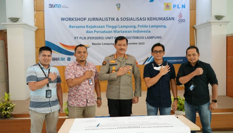 Bandar Lampung (MIN) – Kabid Humas Polda Lampung, Kombes. Pol. Zahwani Pandra Arsyad, S.H., M.Si., menjadi Narasumber pada kegiatan Workshop Jurnalistik dan Sosialisasi Kehumasan yang diselenggarakan oleh PT PLN (Persero) Unit Induk Distribusi Lampung. Rabu (16/11/2022).