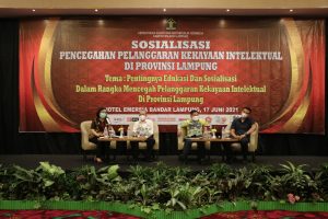 BANDAR LAMPUNG – Kementrian Hukum dan Hak Asasi Manusia RI Kantor Wilayah Lampung kembali mengadakan kegiatan Sosialisasi Pencegahan Pelanggaran Intelektual di Provinsi Lampung .