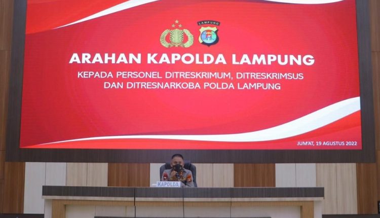 BANDAR LAMPUNG – Kapolda Lampung Irjen Pol Ahmad Wiyagus memberikan arahan kepada 384 personel penyidik Dit Reskrimum, Dit Krimsus dan Dit Resnarkoba dalam rangka memberikan pelayanan masyarakat.