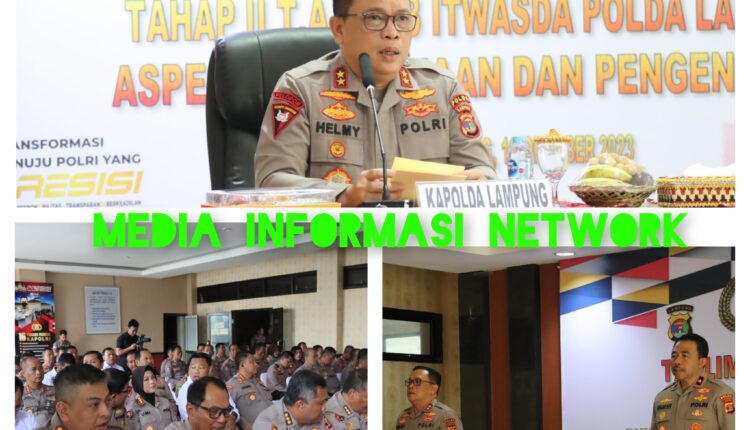 Bandar Lampung (MIN) – Kapolda Lampung Irjen Pol Helmy Santika dan Wakapolda Lampung Brigjen Pol Umar Effendi mengikuti kegiatan Taklimat Awal Audit Kinerja Itwasda Polda Lampung Tahap II TA. 2023 Tentang Aspek Pelaksanaan dan Pengendalian di Mapolresta Bandar Lampung, Senin (16/10/2023).