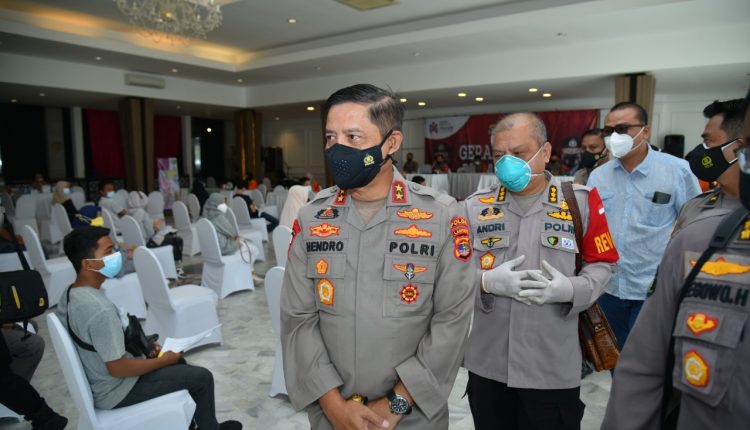 Bandar Lampung (MediaInformasiNetwork.com) – Kapolda Lampung Irjen Pol. Hendro Sugiatno mengecek pelaksanaan Vaksinasi Merdeka Siger Lampung yang dilaksanakan di Graha Wangsa, jalan Yos Sudarso Kelurahan Sukaraja Teluk Betung Selatan Kota Bandar Lampung, Kamis (19/8/2021).