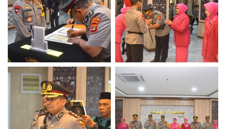 Lampung Selatan (MiN) — Kapolda Lampung Irjen Pol. Dr, Akhmad Wiyagus, S.I.K.M.S.I.,M.M., Pimpin upacara serah terima jabatan (Sertijab), Kapolres Lampung Timur dan Koorspripim Polda Lampung, yang bertempat di aula Siger Lounge, Senin (13/2/2023).