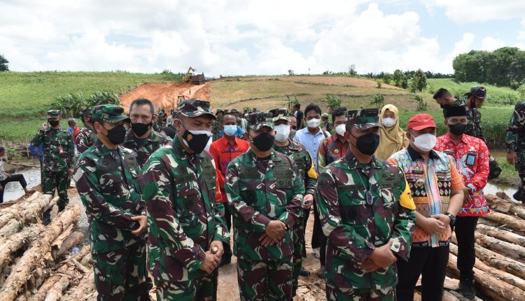 Bandar Lampung : 24/09/2021,Kepala Staf Korem 043/Gatam Kolonel CZI Budi Hariswanto.S.Sos. mendampingi Tim Pengawasan dan Evaluasi (Wasev) melaksanakan peninjauan pelaksanaan TMMD ke-112 Kodim 0426/Tulang Bawang di Kampung Gunung Tapa Ilir Kecamatan Gedung Meneng Kabupaten Tulang Bawang.