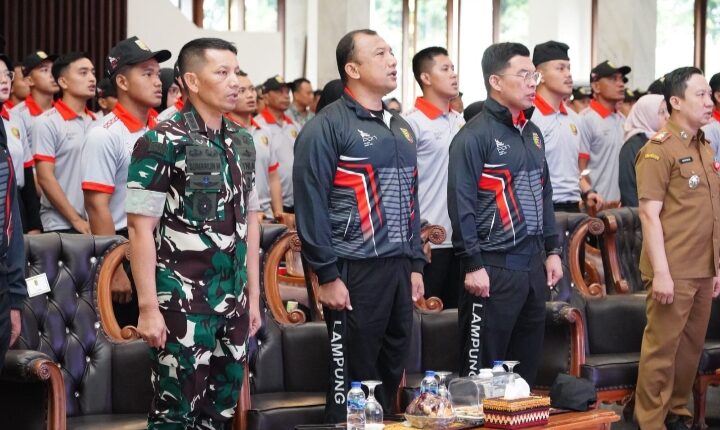 Lampung (MI-NET) – Kepala Staf Korem 043/Gatam Kolonel Inf Sumarlin Marzuki, S.E., M.Han., menghadiri kegiatan Pelepasan Kontingen KONI Provinsi Lampung menuju PON Beladiri II Tahun 2025 yang akan digelar di Kudus, Jawa Tengah. Acara berlangsung di Mahan Agung, Jalan Dr. Susilo, Teluk Betung, Bandar Lampung, Selasa (7/10/2025).