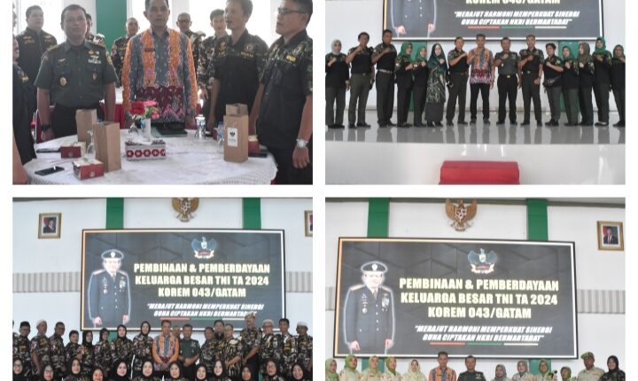 Lampung (MI-Net) – Bertempat di Aula Sudirman Makorem 043/Gatam Jl. Teuku Umar Penengahan, Bandar Lampung, Korem 043/Gatam menggelar Komsos Pembinaan dan Pemberdayaan Keluarga Besar TNI Tahun 2024, yang diikuti 80 orang terdiri gabungan dari FKPPI, HIPAKAD dan PPM, dengan tujuan memperkuat ikatan persatuan dan kesatuan dalam keluarga besar TNI, Kamis (07/11/2024).