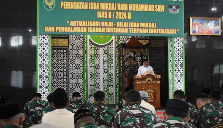 “ Hal ini sesuai dengan ajaran agama islam, yang sejalan dengan tema dalam peringatan Isra’ Mi’raj kali ini yaitu “Aktualisasi Nilai-Nilai Isra’ Mi’raj dan Pengalaman Ibadah, di Tengah Terpaan Digitalisasi”, semoga Allah SWT melimpahkan rahmat, petunjuk, dan lindungan-nya kepada kita semua, dalam melanjutkan pengabdian kepada Bangsa dan Negara Kesatuan Republik Indonesia yang kita cintai, ”pungkas Danrem.