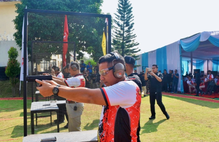 Kegiatan berlangsung di Lapangan Tembak Sanika Satya Wada, Mako Batalyon A Pelopor Brimob Polda Lampung, Labuhan Dalam, Tanjung Senang, Bandar Lampung, pada Sabtu (5/7/2025).
