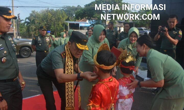 Lampung – Didampingi Ketua Persit Kartika Chandra Kirana Koorcab Rem 043 PD II/Swj, Ny. Hanny Rikas Hidayatullah, Komandan Korem 043/Gatam Brigjen TNI Rikas Hidayatullah, S.E., M.M., beserta rombongan melaksanakan kunjungan kerja di Kodim 0421/LS, Jl. Lintas Sumatera Kalianda, Kabupaten Lampung Selatan. Rabu (03/07/2024).
