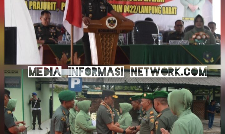 Lampung – Komandan Korem 043/Gatam Brigjen TNI Rikas Hidayatullah, S.E., M.M., didampingi Ketua Persit Kartika Chandra Kirana Koorcab Rem 043 PD II/Swj Ny. Hanny Rikas Hidayatullah, beserta rombongan melaksanakan kunjungan kerja di Kodim 0422/LB, yang berada di Kelurahan Way Mengaku Kecamatan Balik Bukit Kabupaten Lampung Barat, Senin (12/08/2024).