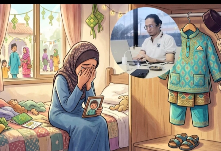 Sebagai orangtua, pasti sering kali terjadi, menangis tersedu-sedu sambil melipat atau memeluk baju Lebaran anak yang sudah tidak ada pemiliknya.