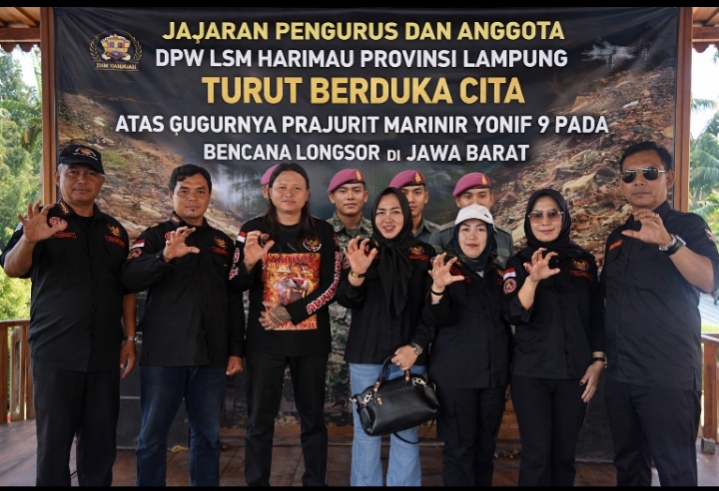 Bandar Lampung (MIN) – Dewan Pimpinan Wilayah (DPW) Lembaga Swadaya Masyarakat Harapan Rakyat Indonesia Maju (LSM HARIMAU) Provinsi Lampung menyampaikan dukacita mendalam atas gugurnya 19 prajurit TNI Batalyon Infanteri 9 Marinir/Beruang Hitam dalam musibah longsor di Jawa Barat, Sabtu (21/1/2026).