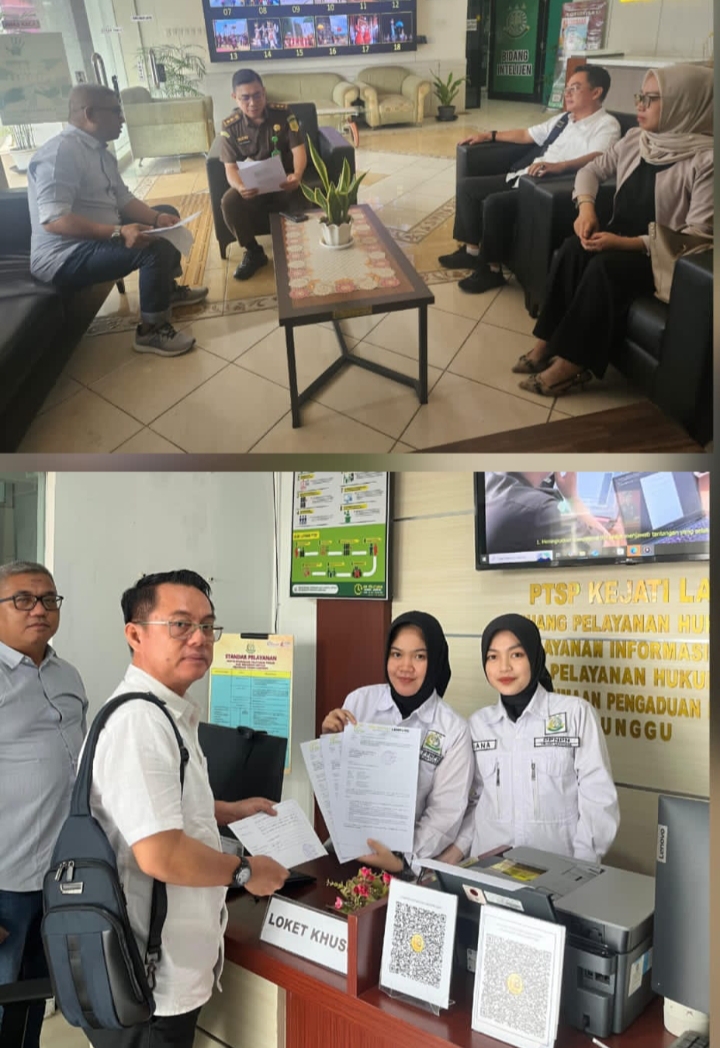 LSM Pro Rakyat dipimpin oleh Ketua Umum Aqrobin A.M, Sekretaris Umum Johan Alamsyah, S.E dan Ketua Biro Pengkajian Hukum, Fitri Nur Asiah Kusuma, S.H, diterima oleh Kasi Penkum Kejaksaan Tinggi Lampung Ricky Ramadhan, S.H, M.H.