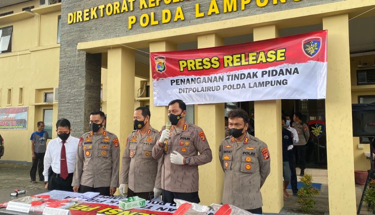 Hal tersebut di ungkapkan Direktur Polairud Kombes Pol. Sis Mulyono, didampingi Kabidhumas Polda Lampung Kombes Pol Zahwani Pandra Arsyad, Wadir Polairud AKBP Sulistiyono, Kasubdit Gakkum, AKBP Ruzwan Bahri, dan Kasubbid Penmas AKBP Rahmad Hidayat, saat melakukan Konferensi Pers di halaman Mako Dit Polairud, Senin (19/9/2022).