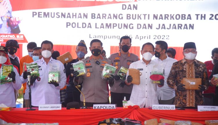 Musnahkan Narkotika Senilai 271,8 Miliar, Kapolda Lampung : 99 Persen Pelaku Kejahatan Pecandu